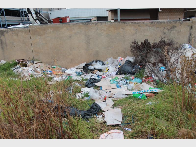 Dis nie net die feit dat die gras so lank laat staan is nie, maar ook die boumateriaal, vullis en weggooi-items wat in dié stukkie land onwettig gestort word, om nie eers die sluipslapers te noem nie. Die oop stuk grond se huidige toestand is ‘n belediging teenoor die enorme motorhandelaars aan weerskante, meen hy.
