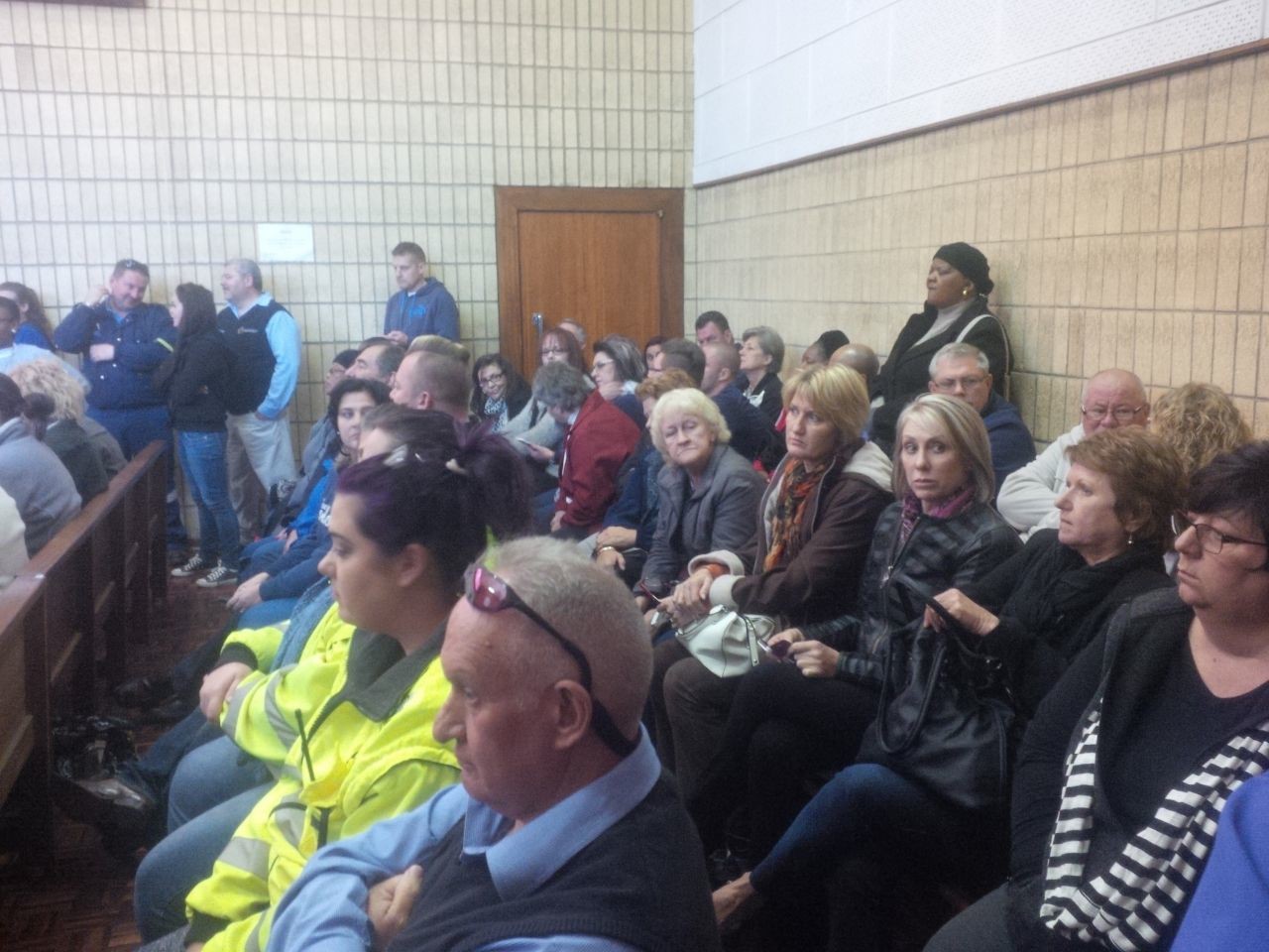 Hours passed as residents, colleagues and families waited to get a glimpse of the suspects involved in the three murders which shocked the community last month.