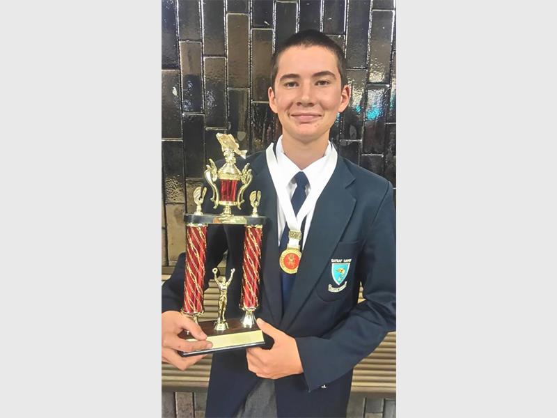 Hoërskool Bastion’s star angler Dylan Jacobs is all smiles after scooping up an award at the Gauteng Bank Angling prize-giving ceremony last month.