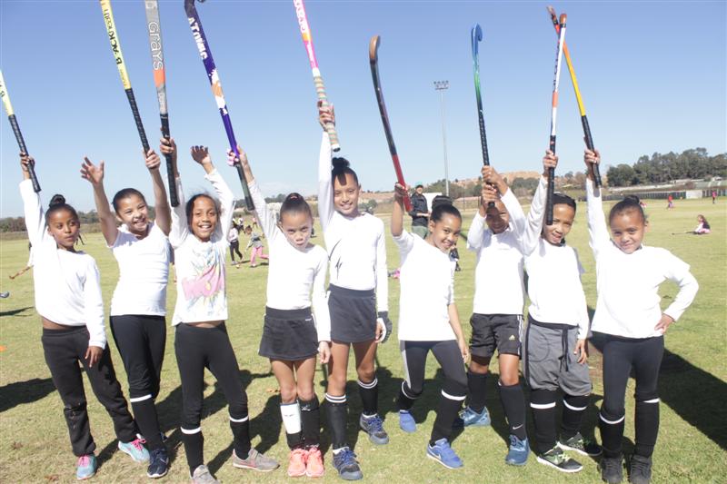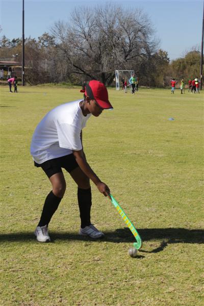 Equipment for learning and playing hockey was provided as almost 200 children from 26 schools in Regions B and C participated. Current and former national hockey players put the children through their paces in the fun hockey games and coaching drills.