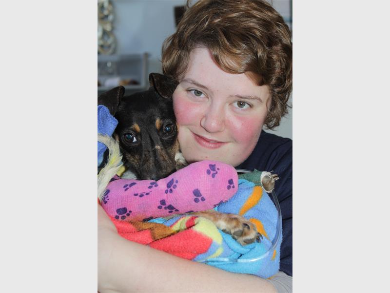 When Claw’s vet at Durban Deep, Jennifer Gerner, first saw the state the pup was in, she was totally shocked. The pup had to be taken to the clinic in Luipaardsvlei because it was in such a bad state. There she asked veterinary nurse Angela Voyiatzakis whether she was ready to deal with the situation. “I knew it must be bad,” said Angela, “but I was very shocked.”