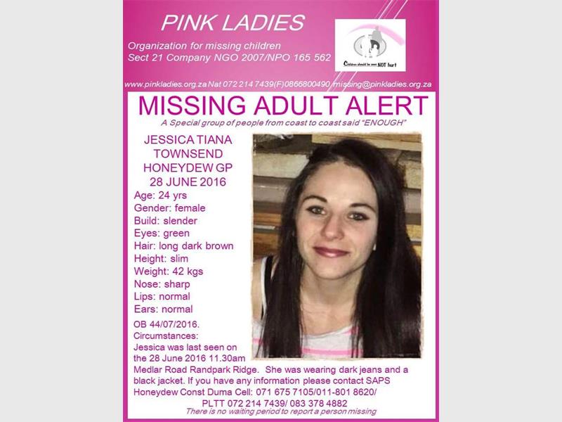 Honeydew Police are on the hunt for Jessica Townsend. She was last seen on 28 June at 11.30am in Randpark Ridge. The 24-year-old woman is slender, weighing only 42 kilograms.