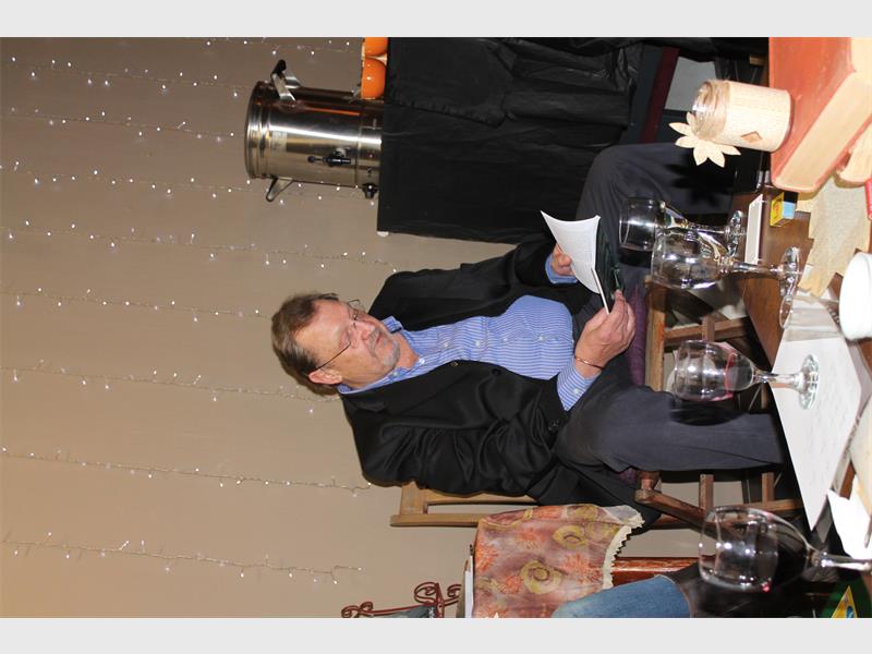 Die gasvrou, Chrisna van Rensburg het ‘n rustige atmosfeer geskep waarin almal gemaklik en ontspanne na die outeur kon luister.