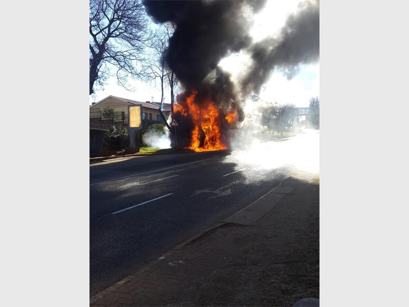 A City to City bus caught fire yesterday morning 14 July, on Griffith Road in Bosmont.