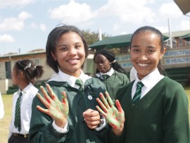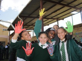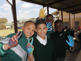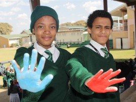 The pupils, and all the staff members, headed to the school’s sports field and painted their hands. Then they placed their hands on the stands, leaving their hand-prints behind. This is because the school has taken the words of Nelson Mandela, our former statesman to heart. He said: “It’s in your hands to make a difference”.
