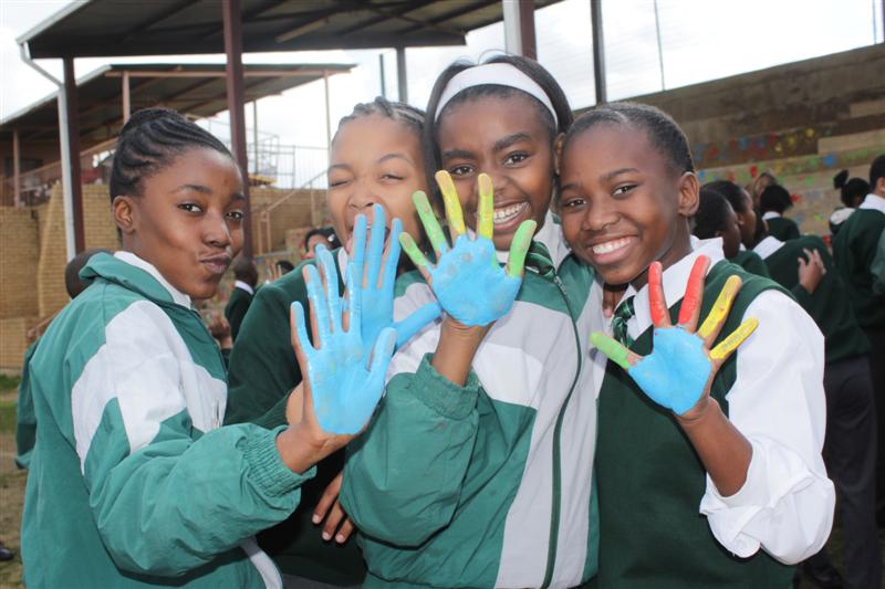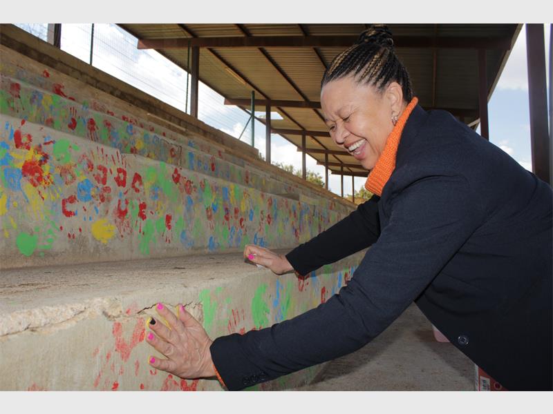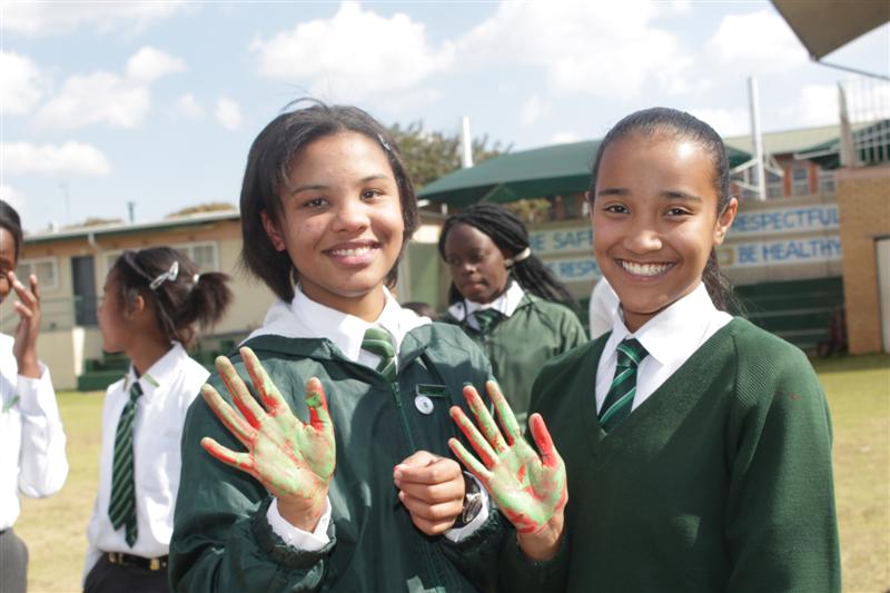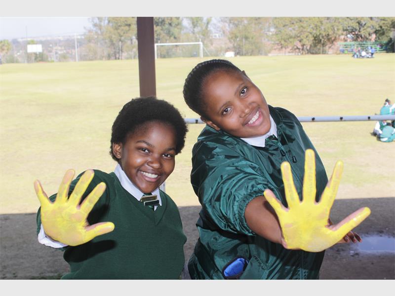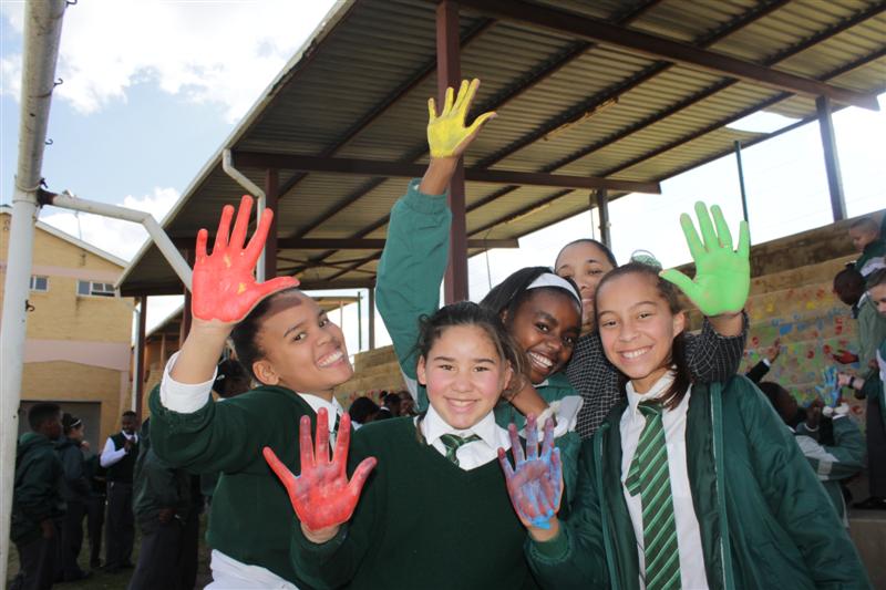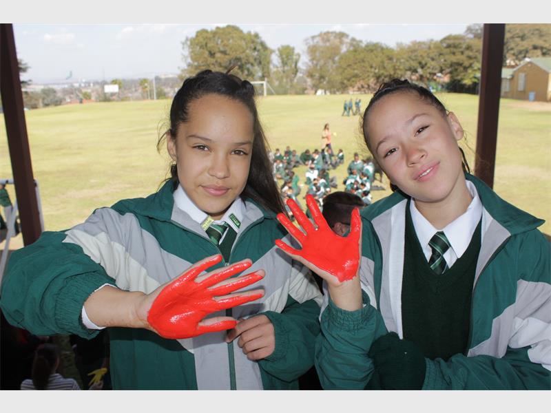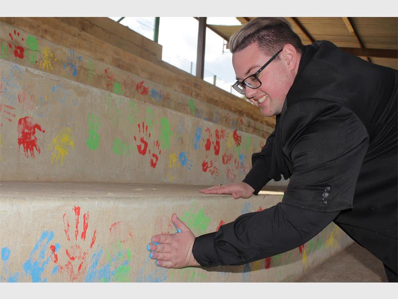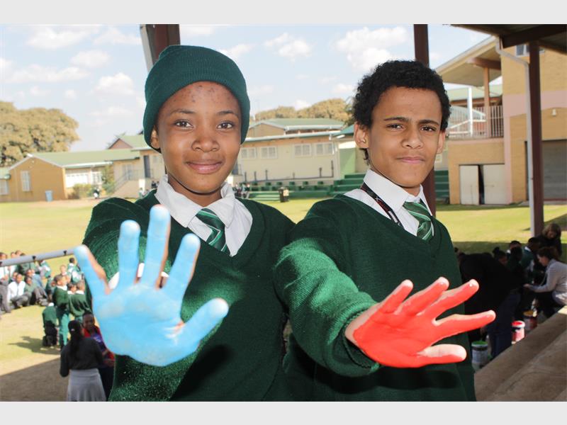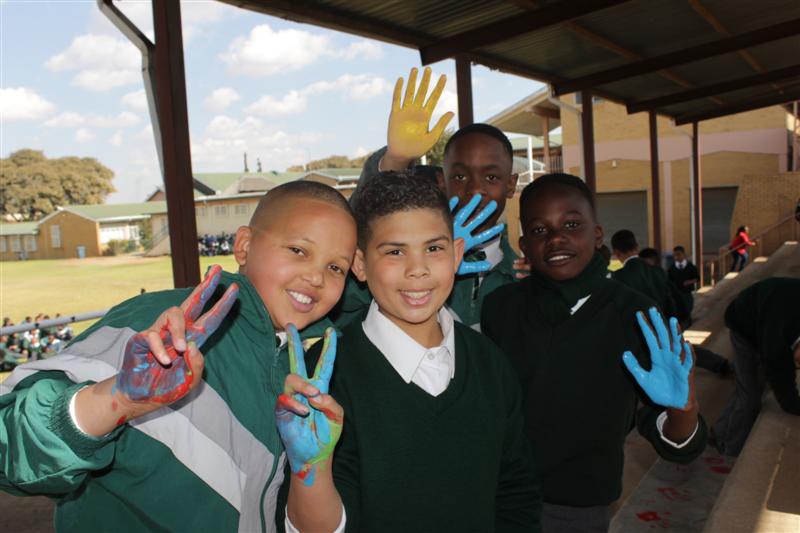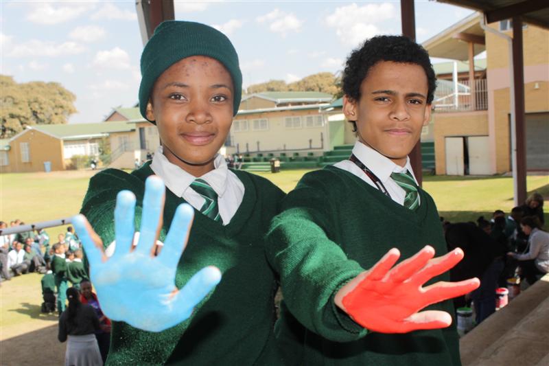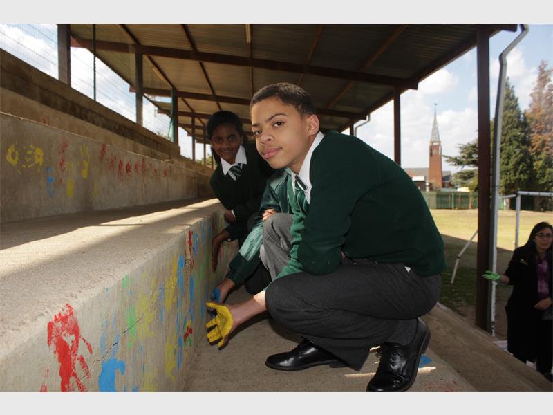 The pupils, and all the staff members, headed to the school’s sports field and painted their hands. Then they placed their hands on the stands, leaving their hand-prints behind. This is because the school has taken the words of Nelson Mandela, our former statesman to heart. He said: “It’s in your hands to make a difference”.