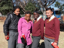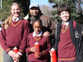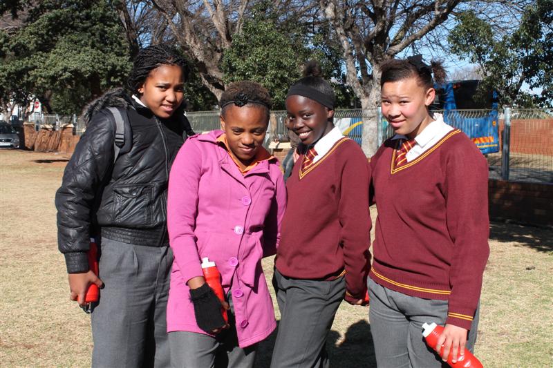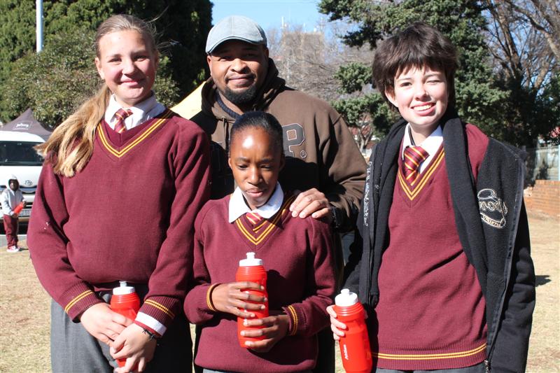 Georgie-Ann du Preez, Rene Steyn, Petunia Segaetsho with mr Thabo Mosolotsane from Roodepark School.,