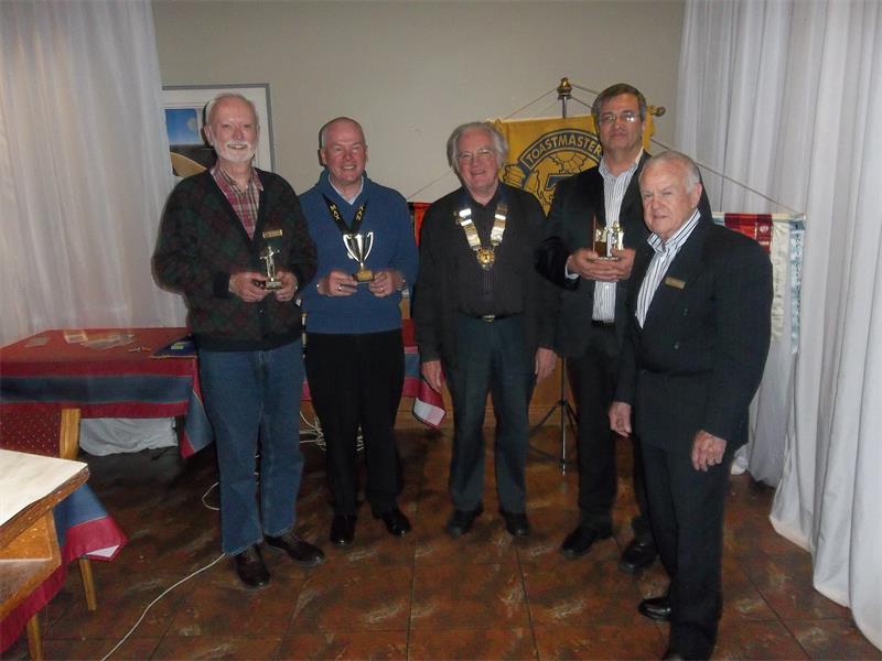 The Trophy for the Best Prepared Speech was awarded to Paul Muller. As a result of a draw, Robert de Kramer and Michael Glencross shared the Trophy for the Best Speech Evaluator. Max Kaan was presented with the trophy for the best Impromptu Speech.