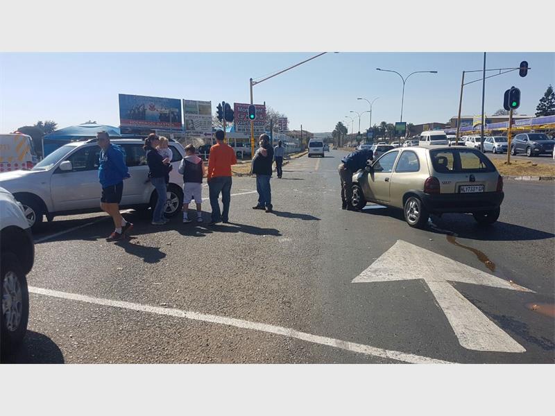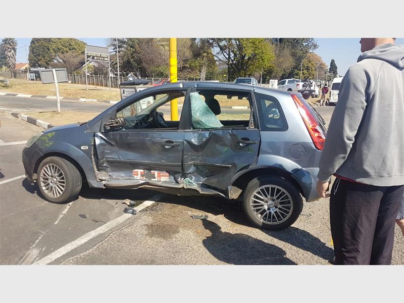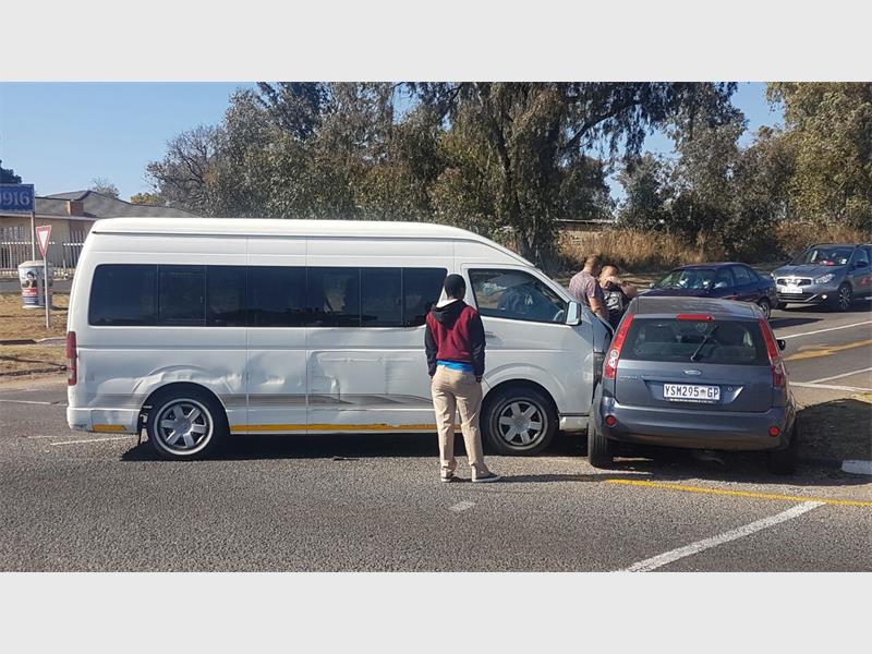 At about 9am a taxi and a Ford Fiesta collided on the corner of Ontdekkers Road and Corlett Avenue. The taxi was driving on Ontdekkers Road towards Krugersdorp when the Ford Fiesta, travelling on Ontdekkers Road in the opposite direction, turned right into Corlett Avenue.