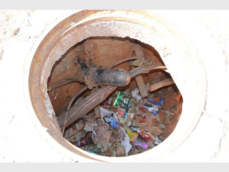 On closer inspection it was found that this was quite a deep hole that had been without a cover for quite some time, judging by the amount of rubbish at the bottom.