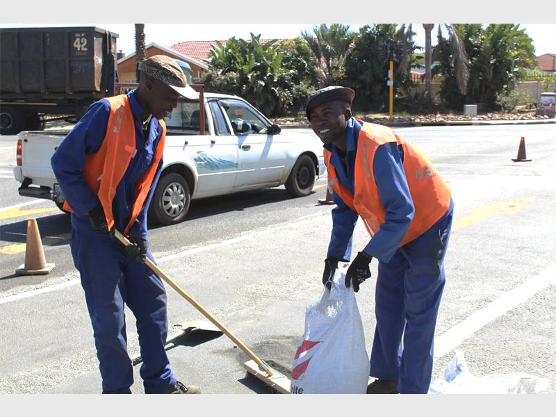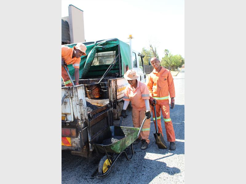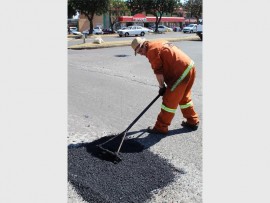 At the intersection of Generaal Pienaar Avenue and Ham Street, one team was busily filling and fixing the potholes across from the Engen service station, while another team was busy at the crossing of Albertina Sisulu Road and Corlett Drive.