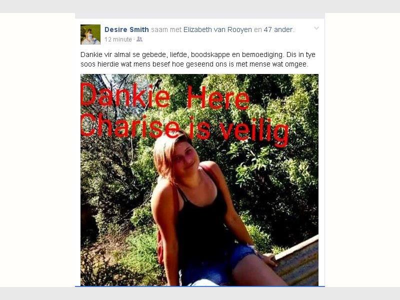 Volgens ‘n inskrywing op haar tannie se Facebook-blad was daar groot verligting by haar vriende en familie toe sy veilig teruggevind is.