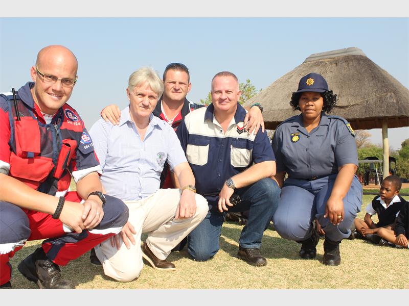 Evacuation procedures in case of emergencies such as bomb threats and attacks were demonstrated by the Roodepoort SAPS and JMPD officers. ER24 Joburg West’s Hentie Malan, and Zelda and Quinton Mulder were on scene, while members of the Roodekrans Neighbourhood Blockwatch and DMS Security kept an eye on proceedings and set up a barrier around the school.