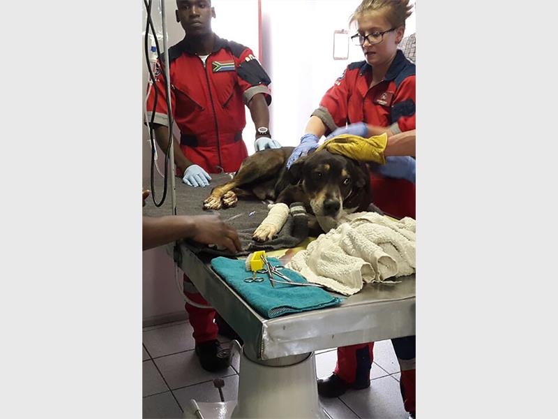 Spider was taken to the veterinarian in an ER24 ambulance. It was found he’d sustained a massive laceration that is believed to be the size of a panga-type knife.