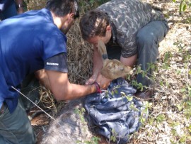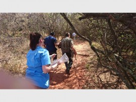Johan Naude the veterinarian from Johannesburg City Parks and Zoo with the help of an assistant busy preparing Rosie for release into Kloofendal Nature Reserve. Photos: Supplied