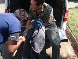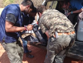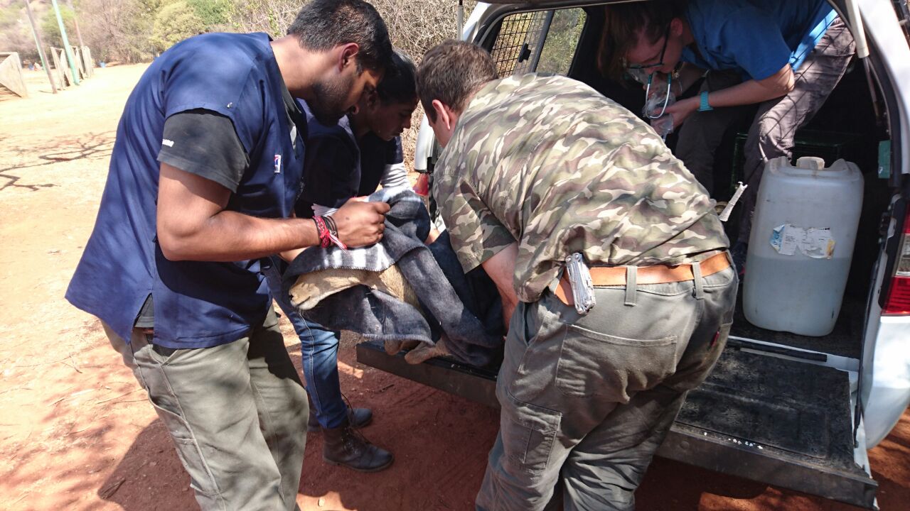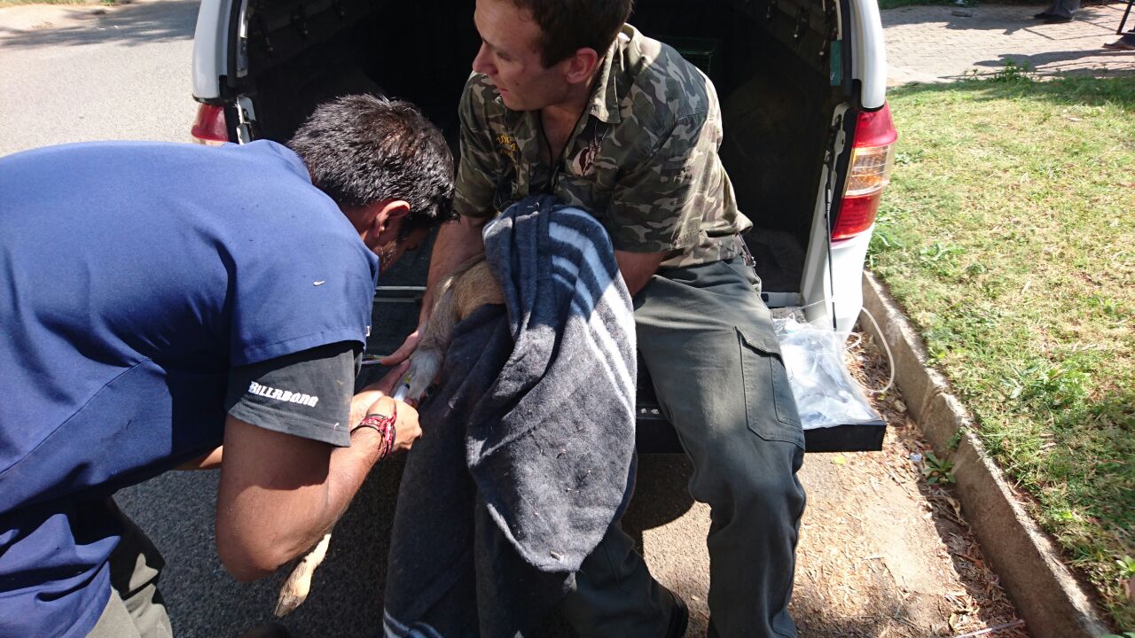 Vet administering fluids an injections to Rosie before taking her to Kloofendal Nature Reserve.
