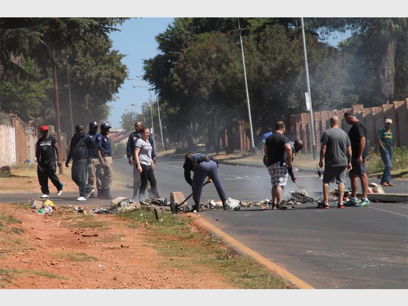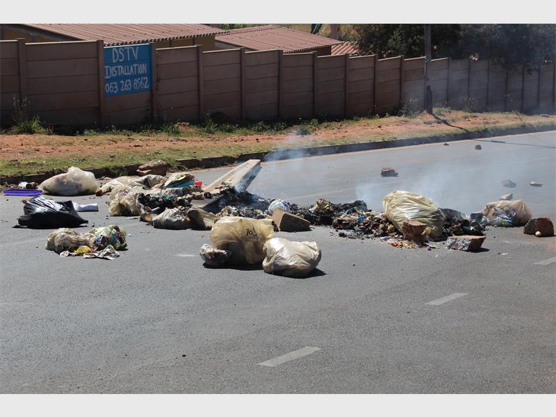 City Power officials were busy moving the mini sub-station from Pannevis Street to a spot further up in the suburb. The residents from the informal settlement came out in full strength to show their dismay. They burned tyres and other debris at both ends of South Road and threw rocks at council vehicles and passing motorists.
