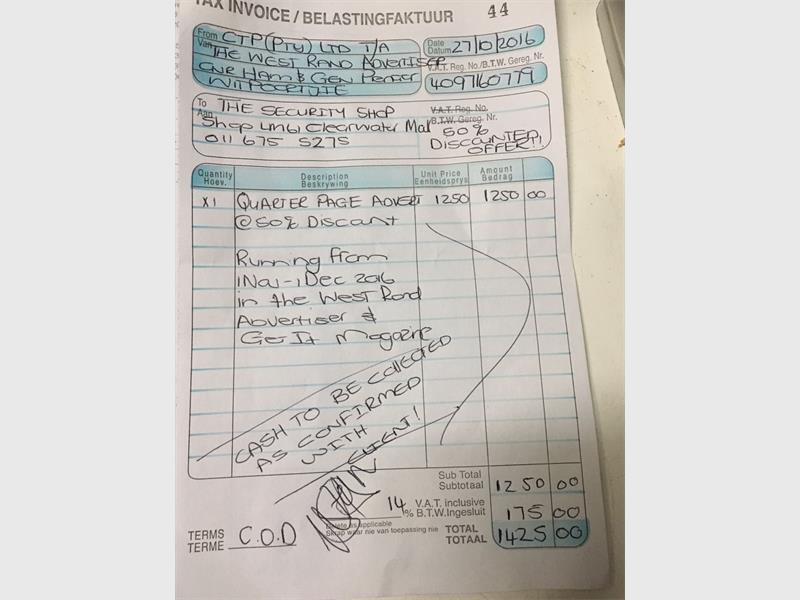 The invoice book she used is the type one can buy at any stationery supplier or supermarket. The invoice book Caxton representatives use are specifically printed for them in an A4 size and on pink paper. She wrote in the VAT number, however Caxton prints its VAT numbers on the invoices. From the type of handwritten information she entered on her invoice though, it is clear she is familiar with the company’s workings and could be a former employee.
