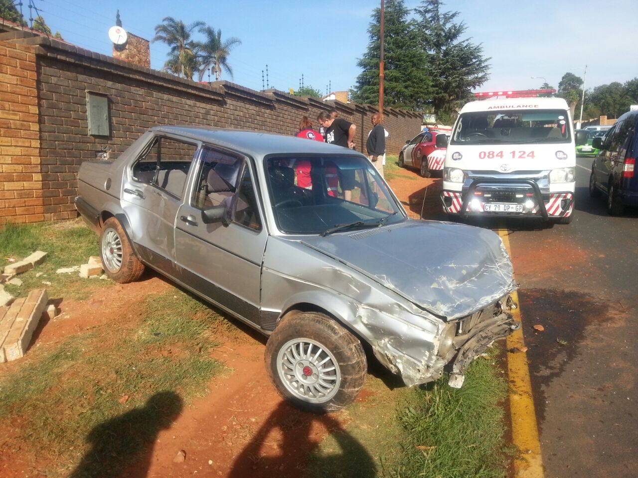 The freak accident occurred at about 7.05am. It is alleged that the vehicle, a Volkswagen Fox, was travelling from the direction of Westgate Shopping Centre towards Corlett Avenue when the driver lost control just past Poplar Street, due to water on the road surface. He hit the pedestrian, a male, and then crashed through the wall of a house close to the corner of South Road and Geelvink Street.