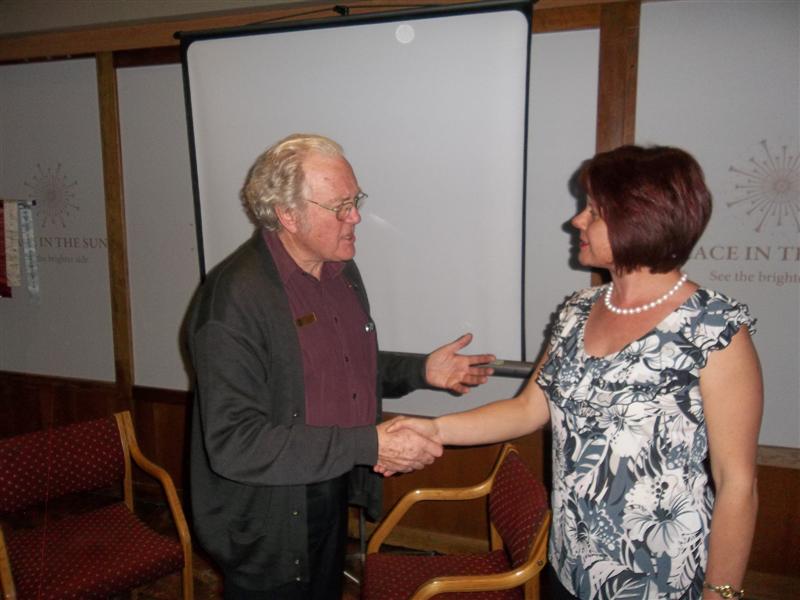 Tim Knights, on behalf of District S 74, presented Dawn Hemming with a certificate recognising the Florida Club for achieving the President’s Distinguished Club 2015–2016 Toastmasters Year and the Club Leadership Excellence Award for the fifth consecutive year.