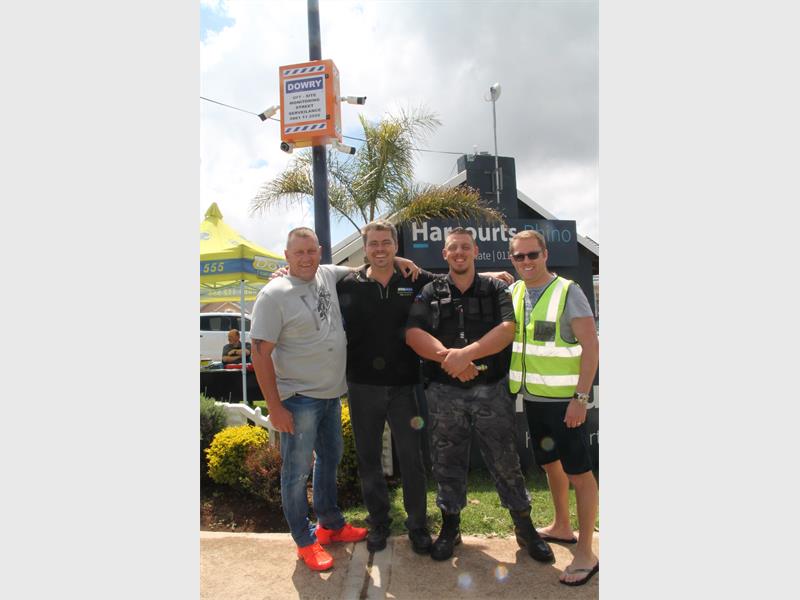 The ‘Take back your street CCTV project’ is a joint venture between Dowry Security, Harcourts Rhino and the neighbourhood watch. The first four cameras were installed on the corner of Mimosa Street and Janine Avenue. The cameras will be monitored 24-hours a day. Kiepersol Street, Ruhama Drive and Dee Dee Brown Drive will be the next streets where CCTV cameras will be installed. The project will then be extended to Witpoortjie.