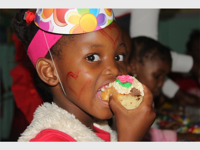 Jozua Naudè Primary School learner, Lindokuhle Mbuli, was all smiles as she celebrated Valentine’s Day – the day of love – and her birthday simultaneously. This Grade R learner wanted to share her special day with those close to her, as well as her friends and classmates.