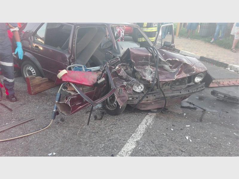 The accident took place at about 6pm last night (26 February) at the intersection of CR Swart and Ontdekkers Roads. The exact cause of the accident is unclear and will be investigated by the Metro Police. A man,woman and baby travelling in a Volvo came off unscathed but the driver of a VW Golf were seriously injured and taken to nearby hospital.
