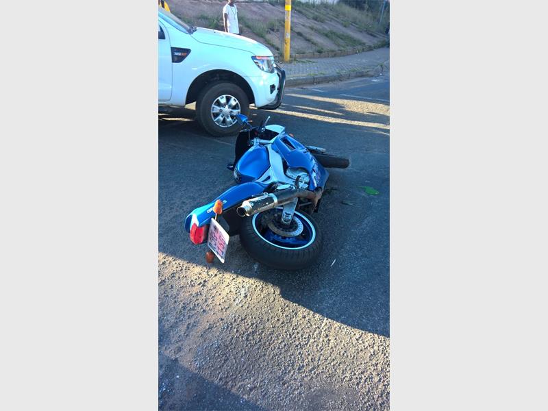 The motorcyclist was travelling on Albertina Sisulu Road from the Roodepoort CBD. When he reached the intersection with Wilgespruit Road, the traffic light’s green arrow was indicating that vehicles had right of way to turn into Albertina Sisulu Road, but a taxi skipped the red light and collided with a small vehicle. This vehicle then collided with the motorcycle.