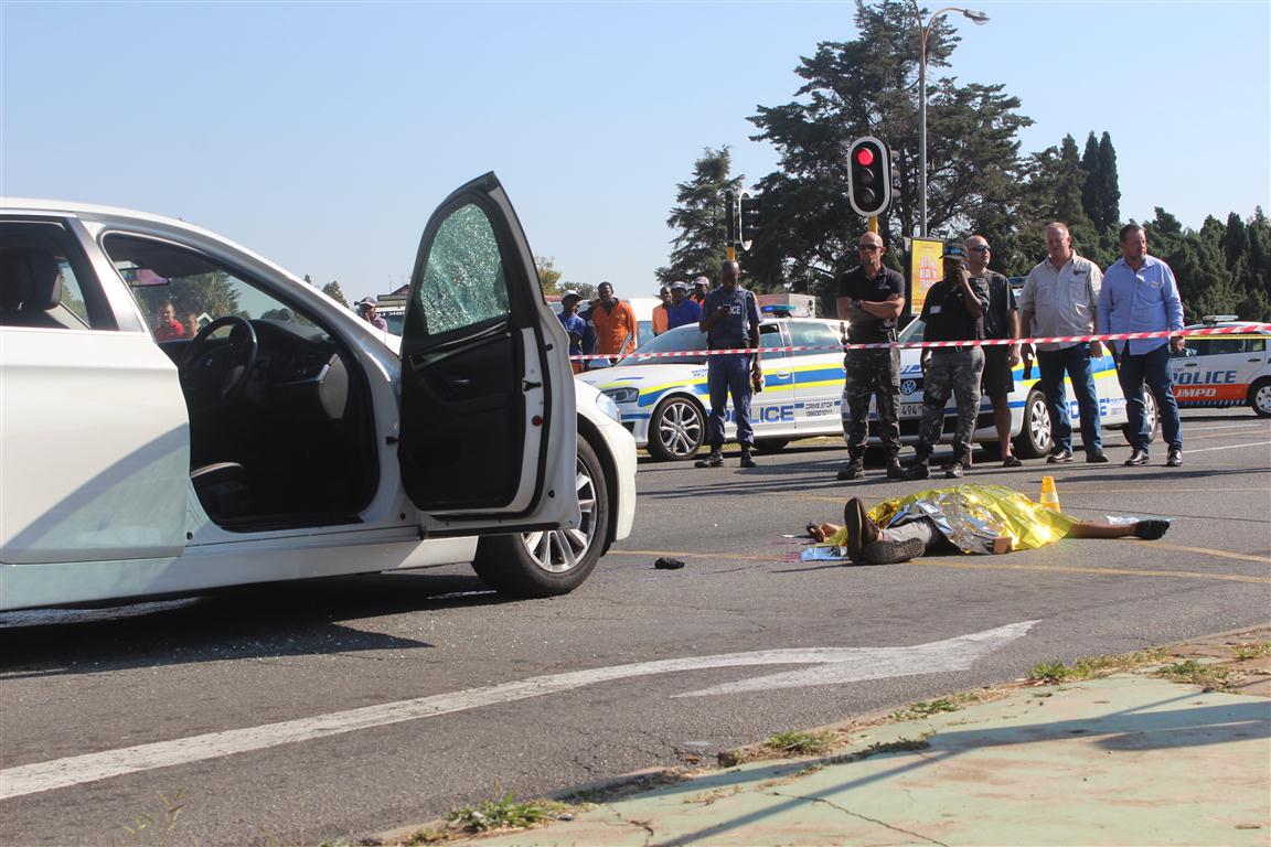 ER24 paramedics found the body of the suspected hijacker lying in front of the BMW. The man showed no signs of life and was declared dead.