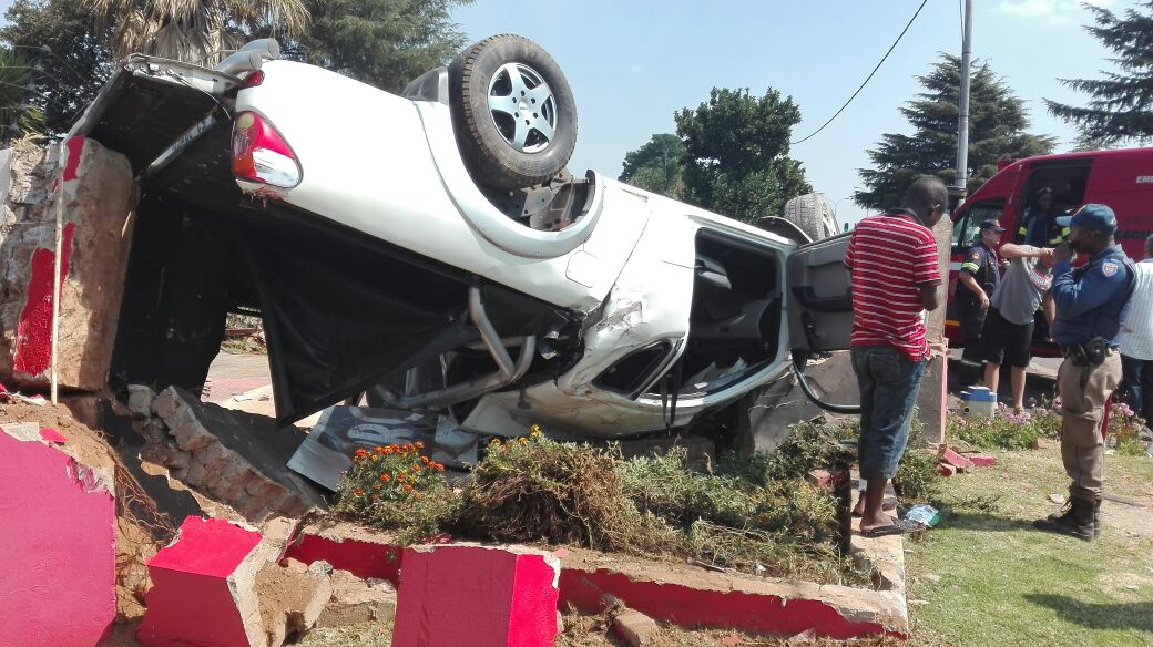 The accident took place at about 10.45am this morning (5 April). This came shortly after an alleged hijacker had been shot dead at the intersection of Mouton and Ontdekkers Roads earlier this morning. It is uncertain what caused the accident but it is alleged that the driver of the bakkie had to swerve to prevent colliding with another vehicle.