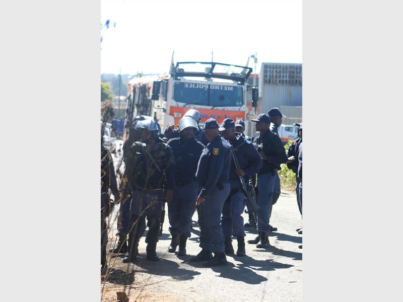 There was a large police presence at the Roodepoort Rugby Club informal settlement on the afternoon of 17 May as they started the process of evicting the illegal land invaders.