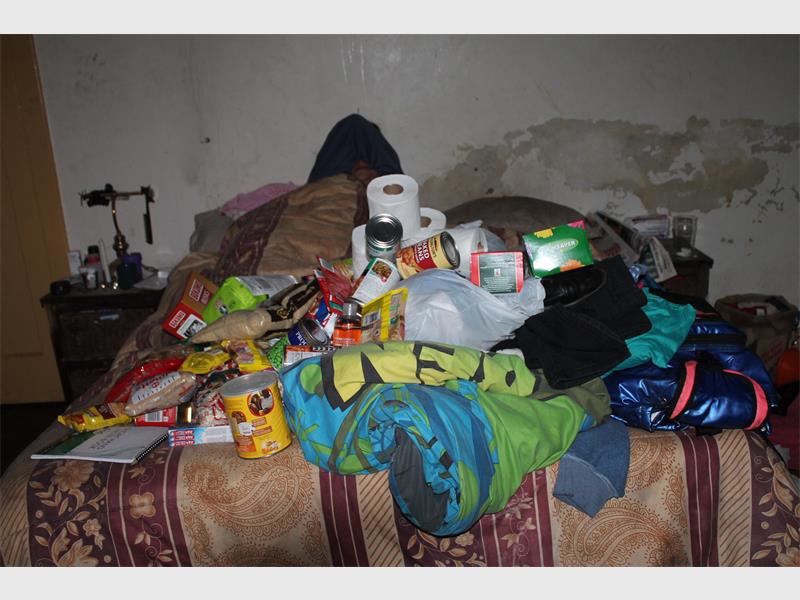 We wash in buckets of cold water in the room, because there is nowhere else to go. We also don’t have access to the kitchen. We turned one corner of the bedroom into a kitchenette where I can at least cook something to eat on a two-plate gas stove. We have nowhere to go. My parents are state pensioners and cannot help, and I cannot afford another place.”