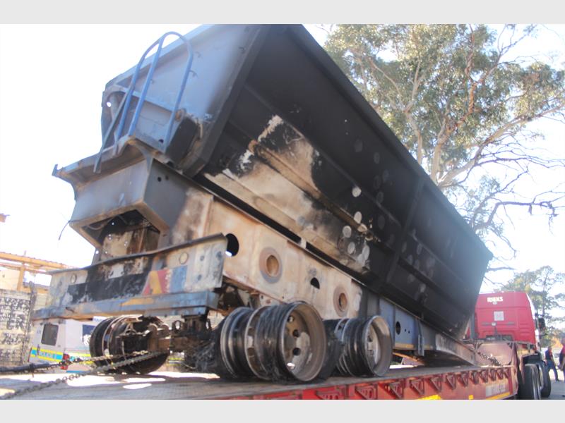 The two trucks on Albertina Sisulu Road that were set alight and looted during protest action have been towed away under heavy police guard.