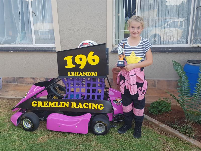 Leandri Pienaar, wat in die Ninja Midgets-klas deelneem, het ‘n eerste plek in haar wedren in Potgietersrus behaal.