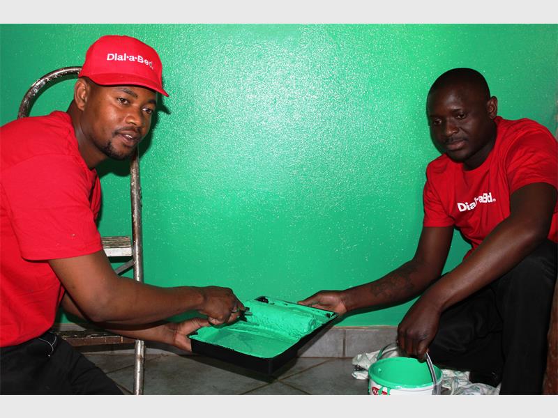 Mncedisi Tshabala painting the reception area.