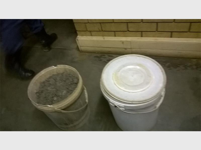 The operation took place at about 9am in Sol Plaatjies. Ten of the suspects were zama-zamas (illegal miners), while the eleventh man was arrested for possession of dagga. Two containers were also confiscated – one containing a chemical solution and the other gold dust.