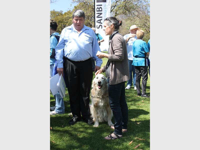 The immediate past District Governor, Bernd Gerhard, was joined by Sandy King (wife of the current District Governor) and Pierre Theron (Chairman of Sight) as the ribbon was cut and the Sensory Garden Trail was declared open. There was great excitement as Pieter van Niekerk, Head of Public Relations for the South African Guide Dog Association, accompanied by his guide dog O’Reilly was joined by Johannes and Jessica Grib from the Lions Roodepoort Host Club, to walk the trail for the first time. “While on the trail, Jessica read the new Braille signs describing the sights, sounds and plants along the way,” said Sandy.