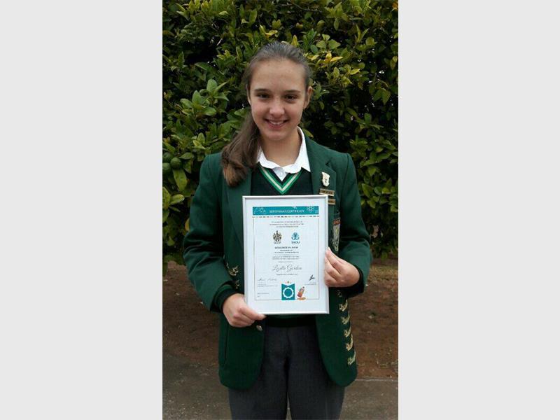 Lizelle Gordon het ‘n tweede plek verower. “Hierdie prestasie plaas haar onder die Top 10 Graad 7-wiskundeleerders in Suid-Afrika,” het Theolene Pienaar, die skool se skakelbeampte gesê.