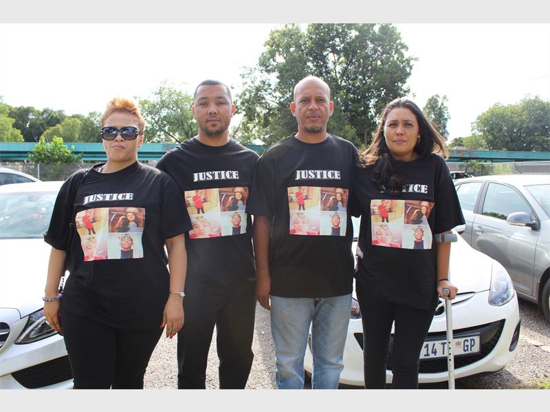 Seventy-odd protesters who had gathered outside since about 8am chanted slogans such as “Justice for our kids” and “Justice for our families”. Among them were family and friends of the four teenagers, Keanu and Kyle de Silver, Liam Gannas and Maleeha Malick, who tragically died in a motor vehicle accident on 25 August. It is alleged that a drunk driver smashed his taxi into their vehicle at the intersection of Ontdekkers Road and Golf Club Terrace.