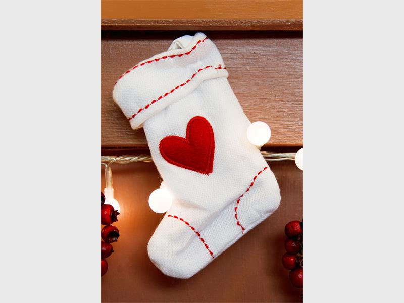 To spruce up your décor, you can choose to hang up white Christmas socks, instead of the usual red. This will be a fun look and a nice change to the white Christmas set up.