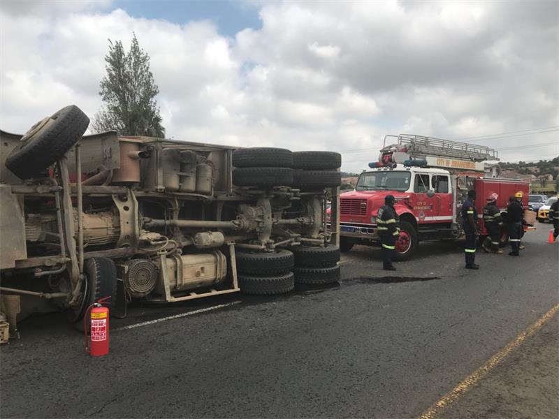 Truck overturns on Christiaan de Wet Road after tyre burst
