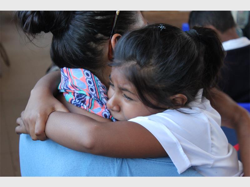 Sarah Naicker begs her mother Roma to take her home. Photo: Siso Naile.