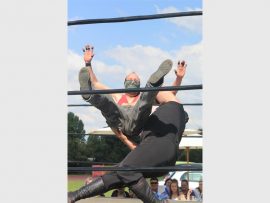 Home/Galleries/Community galleries/Stoeiers samel geld vir Tytan in Community galleriesGalleries Stoeiers samel geld vir Tytan in HWA stoeiers vermaak gehoor ten bate van Tytan Swarts January 18, 2018 Adéle Bloem Less than a minute Facebook X LinkedIn Tumblr Pinterest WhatsApp Telegram Share via Email Print Steve Eden en Tytan Swarts. Foto's: Adéle Bloem Tytan Swarts (links) en sy beste maat, Devin Kok. Hy sal vir die volgende ses weke in gips wees. Foto: Adéle Bloem Steve Eden op pad om Mr Money teen die planke te gooi. Cyclone pen vir The Bandit teen die toue vas. The Bandit na die geveg. Hendrik Jacobs het die hoogste bod op die Lions rugbytrui ingesit. Gravity en The Ripper in die kryt. Harliquinn maak reg om Azazel planke toe te stuur. Mr Money (links), Hector Payne (onder ) en Steve Eden spook sake vir die titel uit. Azazel en Harliquinn in die kryt. The Bandit word deur Cyclone gegooi. January 18, 2018 Adéle Bloem Less than a minute Facebook X LinkedIn Tumblr Pinterest WhatsApp Telegram Share via Email Print