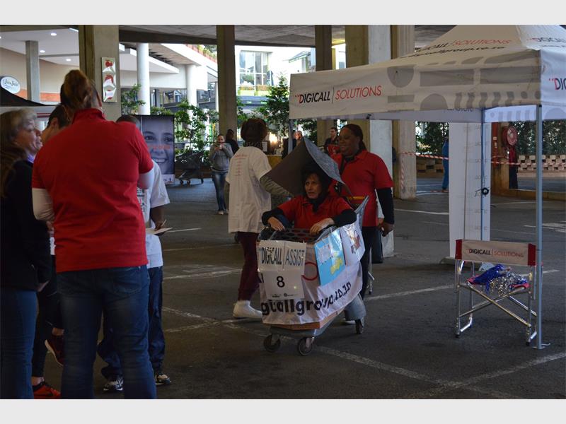 Each team consists of four people – one team member is the pilot, sitting inside a shopping trolley and the other three team members will push the trolley around a 2,5km demarcated track in the parking lot of the mall. The team needs to pass the check point and finish line at the same time to qualify for a place, and only the three nominated members are allowed to push the trolley.