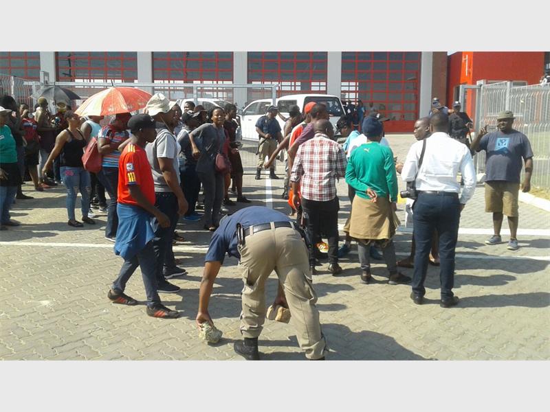 Protesters in front of the Cosmo City Fire Station.