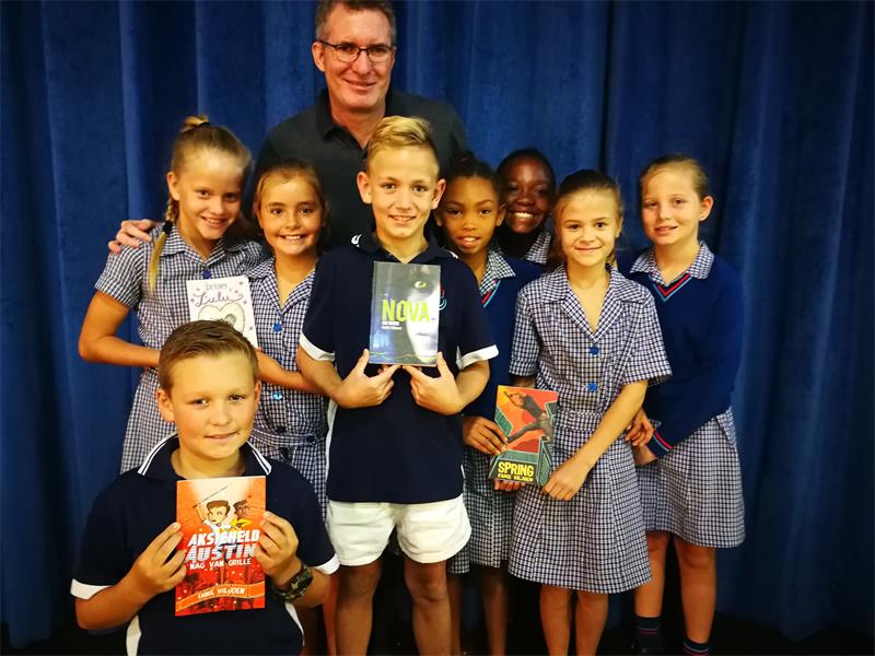 Sy het bygevoeg dat hy die deur na sy boeke vir die leerders oopgemaak het om hulle te probeer opgewonde maak en geïnteresseerd te kry. “Fanie se boeke sal aanklank vind by seuns en dogters, want hy skryf oor monsters, rugby, trompoppies, ballet, dans en kinders wat deurskynend kan word. Dit was regtig ‘n plesier om na hom te luister en ‘n kykie in sy boeke te kry,” het Hanli-Mari gesê.