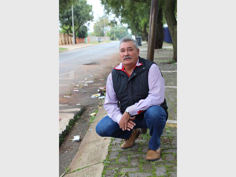 Willie Koekemoer, who resides on Boren Street, Witpoortjie, has had it with the rubbish that not only litters the street but also finds its way onto his property.