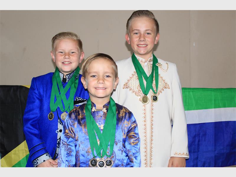 The 13-year-old JC Roux, his 11-year-old brother, JP, and their five-year-old brother, JT, bagged nine gold medals between them. Luitha Roux, their mother, said proudly, “JC also achieved a third place in the Mr Talent Africa category and JT won the Best Personality award out of thousands of entries.”