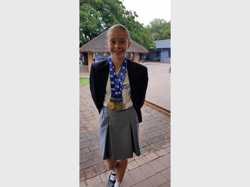 The Agape Christian School Grade 8 learner won gold, silver (x 2) and bronze medals in an event attended by over 300 children from various districts, including Zimbabwe and Swaziland.