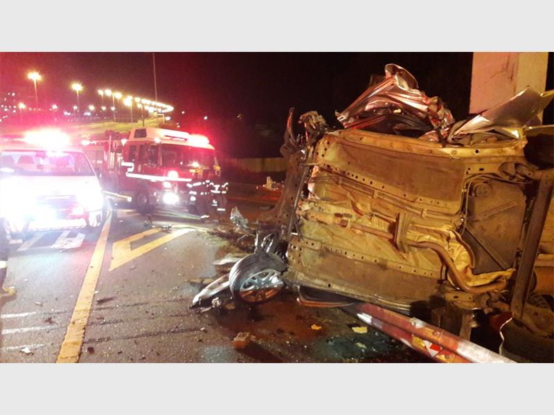 According to ER24 spokesperson Russel Meiring, ER24 paramedics, along with the Fire and Provincial services, arrived on the scene at 2am to find a crumpled light motor vehicle in the emergency lane of the off-ramp.